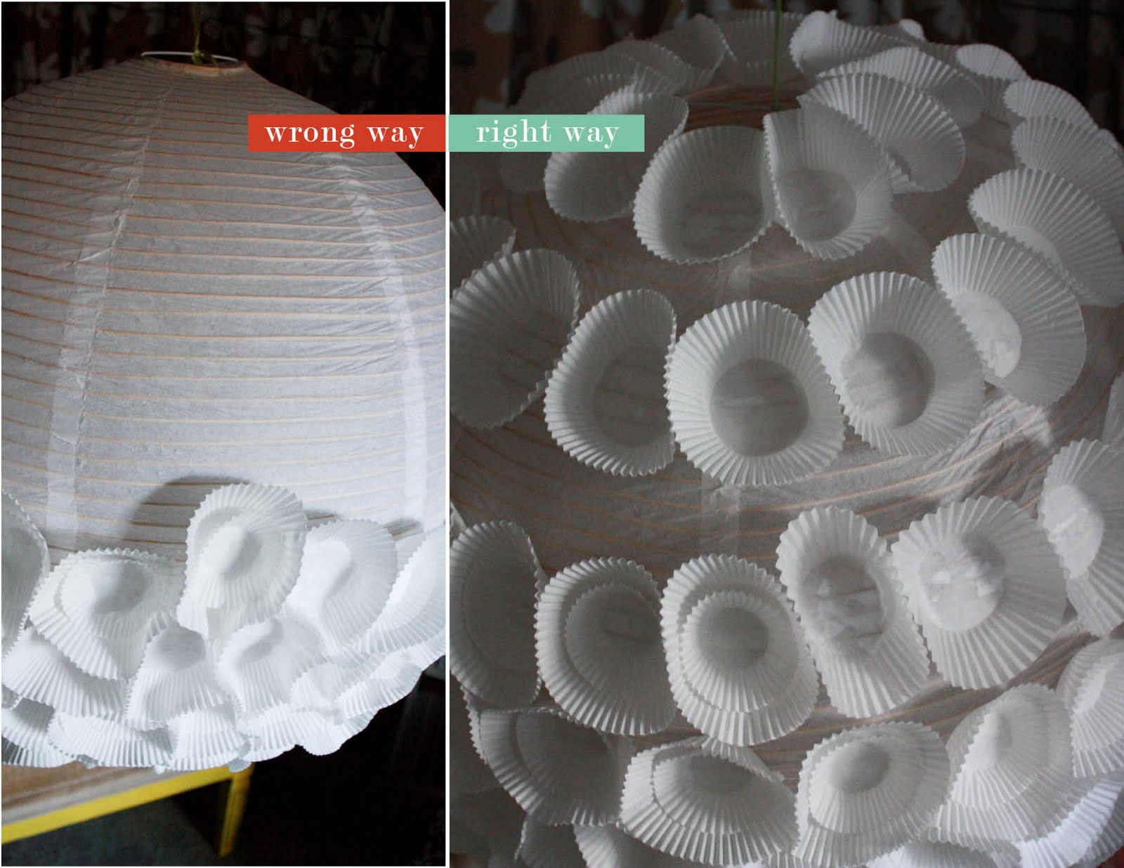 Dependendo do tipo da festa que você queira fazer, pode ser substituída a cor das forminhas. Não é difícil confeccionar a luminária. Pode-se adquirir a luminária japonesa em lojas de bazar e de decoração (muitas veses até no R$1,99), comprar as forminhas (na Linna!!) e começar a colagem! Atenta-se para a forma que deve ser colada as pelotines.