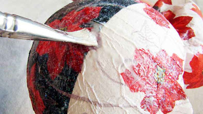 PASSO 2: Com uma das metades da bola de isopor ajuste o guardanapo conforme seu gosto.
