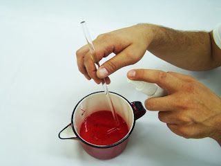 PASSO 4: Acrescente o corante vermelho, sempre mexendo para misturar os elementos.